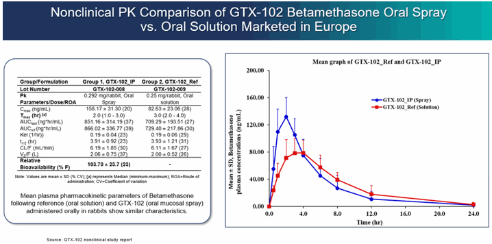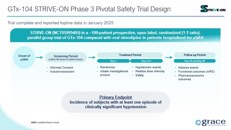 the future prospects of our GTx-104 drug candidate, including but not limited to GTx-104’s potential to be administered to improve the management of hypotension in patients with aneurysmal subarachnoid hemorrhage (“aSAH”); the ability of GTx-104 to achieve a pharmacokinetic (“PK”) and safety profile similar to the oral form of nimodipine; GTx-104’s potential to provide improved bioavailability; GTx-104’s potential to achieve pharmacoeconomic benefit over the oral form of nimodipine; and the timing and ability to receive FDA approval for marketing GTx-104;