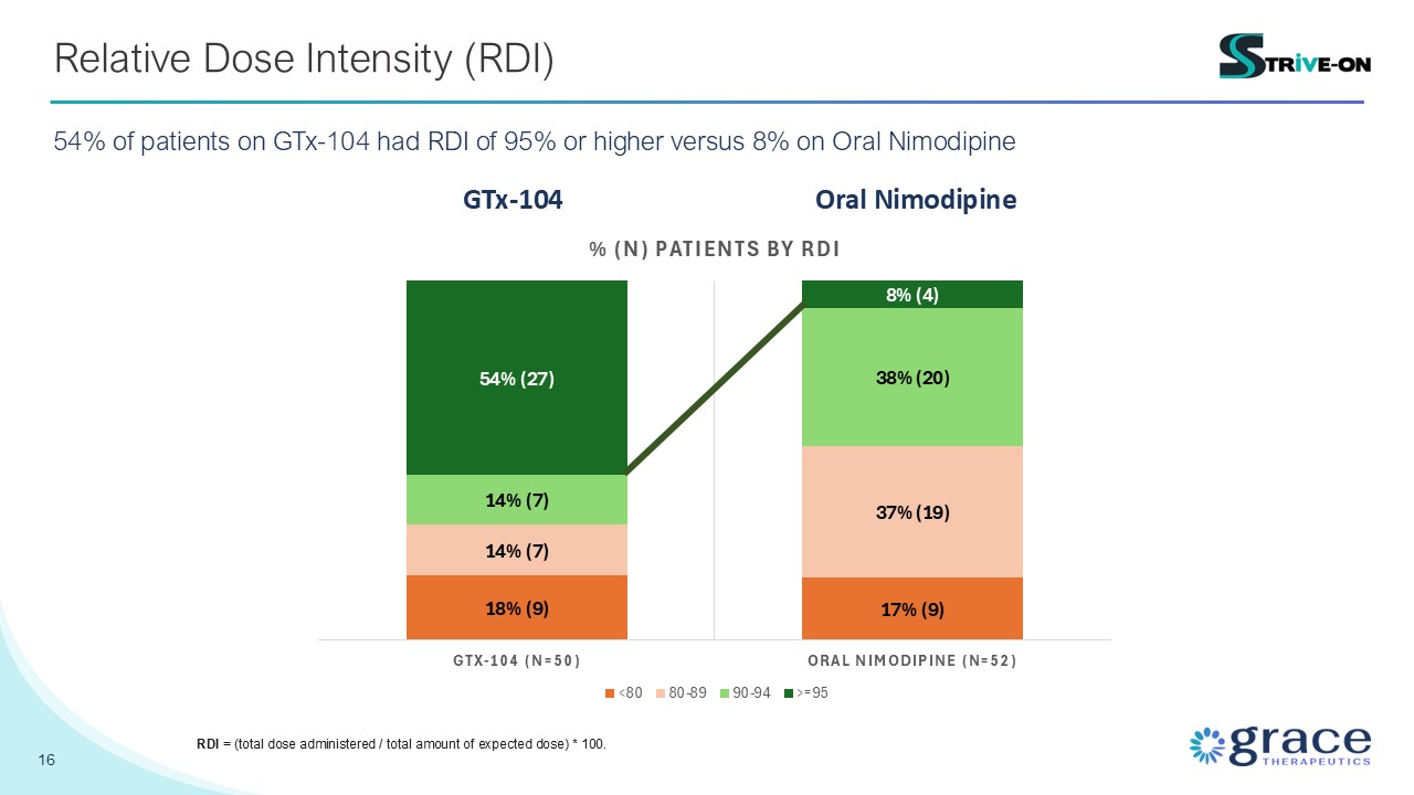 higher versus 8% on Oral Nimodipine GTx-104 Oral Nimodipine RDI = (total dose administered / total amount of expected dose) * 100.