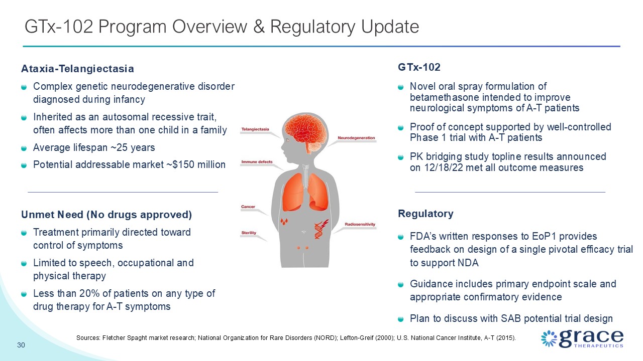 formulation of betamethasone intended to improve neurological symptoms of A-T patients Proof of concept supported by well-controlled Phase 1 trial with A-T patients PK bridging study topline results announced on 12/18/22 met all outcome
