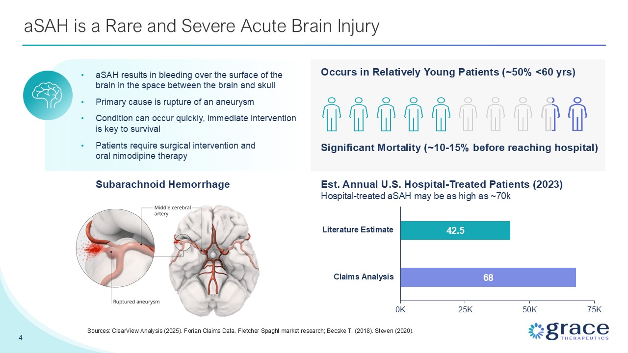 intervention and oral nimodipine therapy 4 Sources: ClearView Analysis (2025). Forian Claims Data. Fletcher Spaght market research; Becske T. (2018). Steven (2020). Occurs in Relatively Young Patients (~50% <60 yrs) Significant