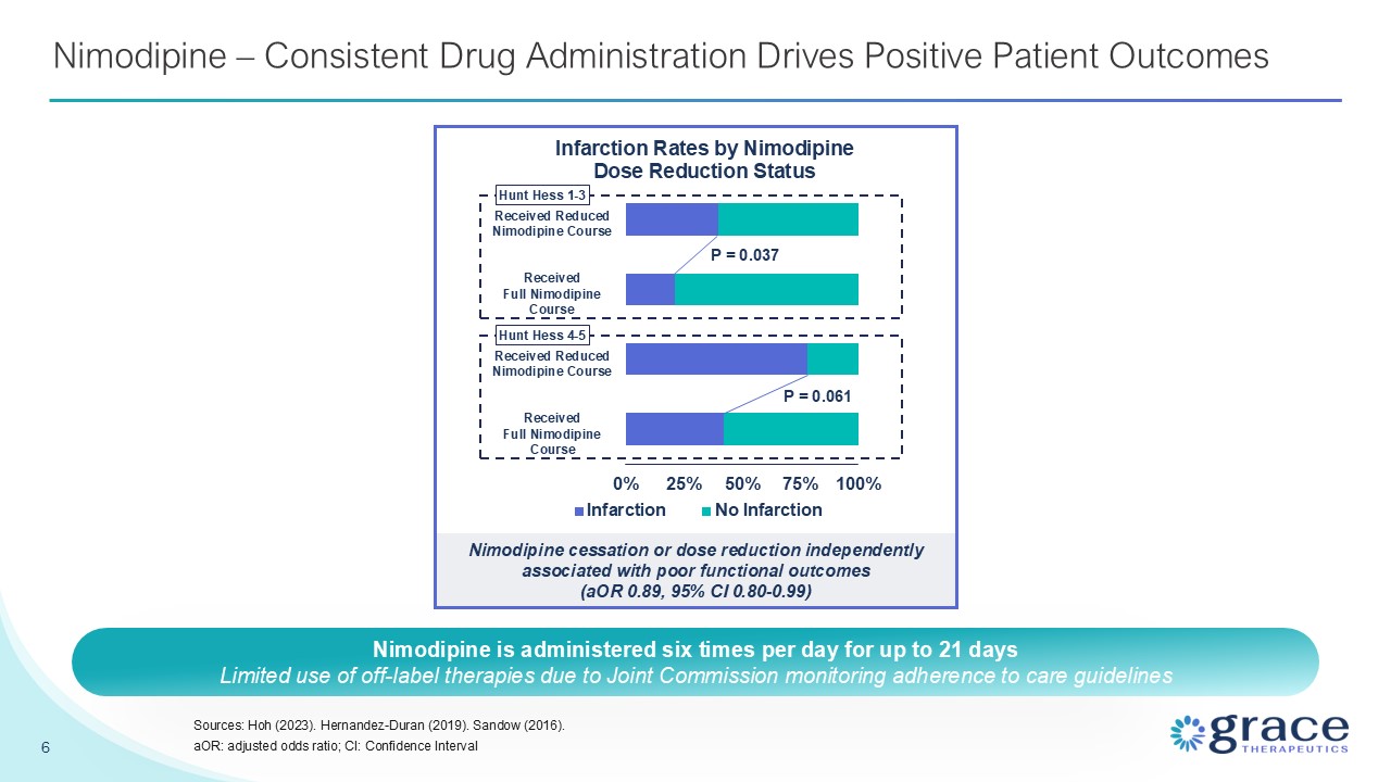 Oral Nimodipine – The aSAH Standard of Care for >3 Decades 5 Sources: Hoh