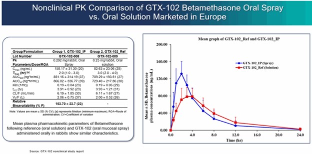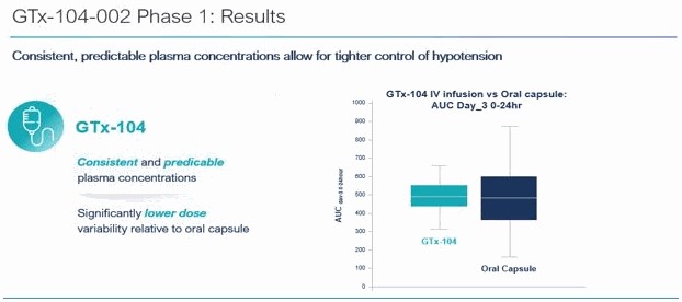 the future prospects of our GTx-104 drug candidate, including but not limited to GTx-104’s potential to be administered to improve the management of hypotension in patients with aneurysmal subarachnoid hemorrhage (“aSAH”); the ability of GTx-104 to achieve a pharmacokinetic (“PK”) and safety profile similar to the oral form of nimodipine; GTx-104’s potential to provide improved bioavailability; GTx-104’s potential to achieve pharmacoeconomic benefit over the oral form of nimodipine; and the timing and ability to receive FDA approval for marketing GTx-104;