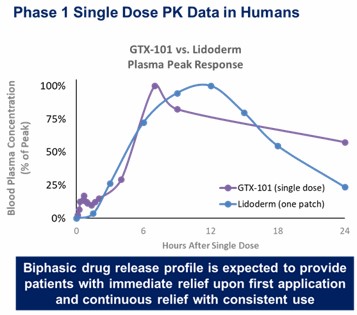 the future prospects of our GTx-101 drug candidate, including but not limited to GTx-101’s potential to be administered to postherpetic neuralgia (“PHN”) patients to treat the severe nerve pain associated with the disease; assumptions about the biphasic delivery mechanism of GTx-101, including its potential for rapid onset and continuous pain relief for up to eight hours; and the timing and outcomes of single ascending dose/multiple ascending dose and PK bridging studies, and a Phase 2 and Phase 3 efficacy and safety study; the timing of an NDA filing for GTx-101 under Section 505 (b)(2) of the FDCA; and the timing and ability to receive FDA approval for marketing GTx-101;
